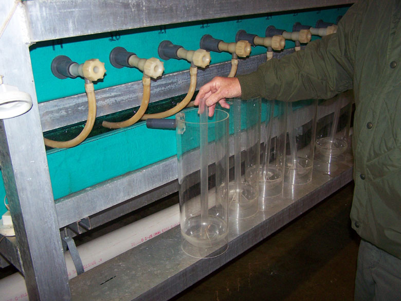 Fry Collection: Water from each jar battery flows to a fry collection tank. Fry swim from the jar and gather in the collection unit. Fry are removed from the collection units and stocked each day during the hatching period which usually lasts 5 – 7 days.