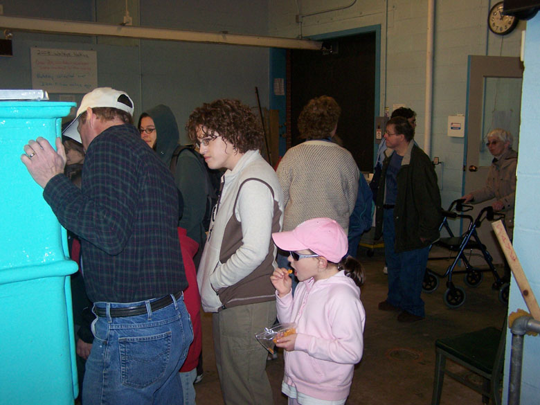 Boiler Room: Propane fired boilers supply energy for heating the building and cultural water. A minimum rearing temperature of 55° is necessary to start walleye fry feeding on brineshrimp. Cultural water passes through heat ex-changers which increases its temperature, then passes through a mixing valve and a packed column to remove excess gas, and injected into unheated creek water. The cultural boilers are capable of increasing the temperature of the rearing water (300 GPM) by 5° – 7°.