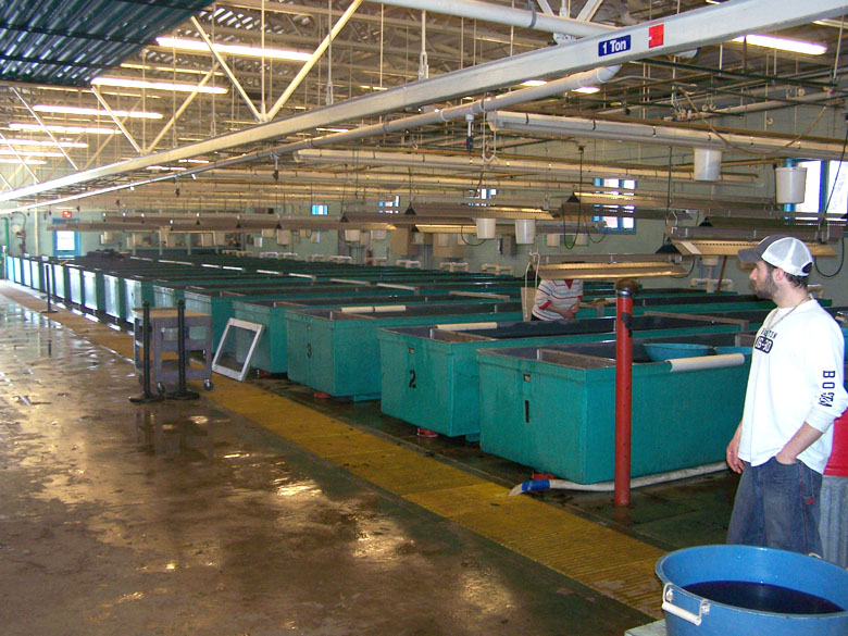 Research Wing: Nine rectangular rearing units and four circular tanks with a lab for research directed at improving cultural techniques.